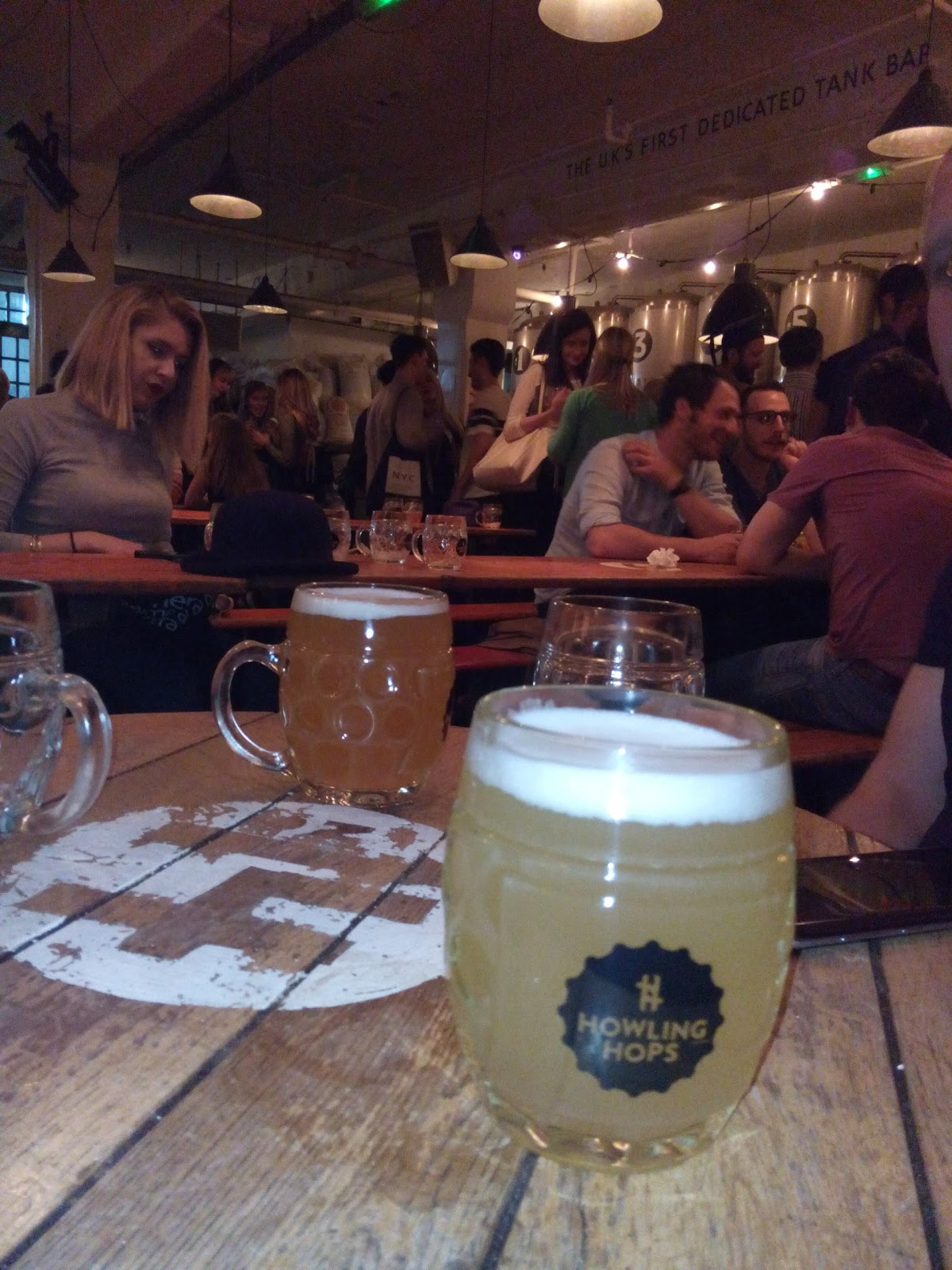 From there, we headed round the corner in to Queens Yard for a visit to Howling Hops. I was intrigued by the fact that they're the UK's first bar to serve beer straight from the tank. This could have been a bit of a gimmick, but actually what's not to love about beer served as fresh as possible?
